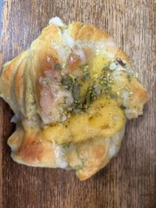 Deilig pistasjsnurr med vaniljekrem, toppet med pistasjnøtter.