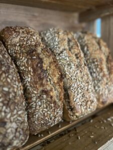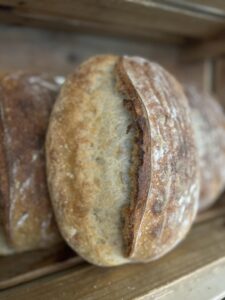 Lyst surdeigsbrød av landhvete og svedjerud.